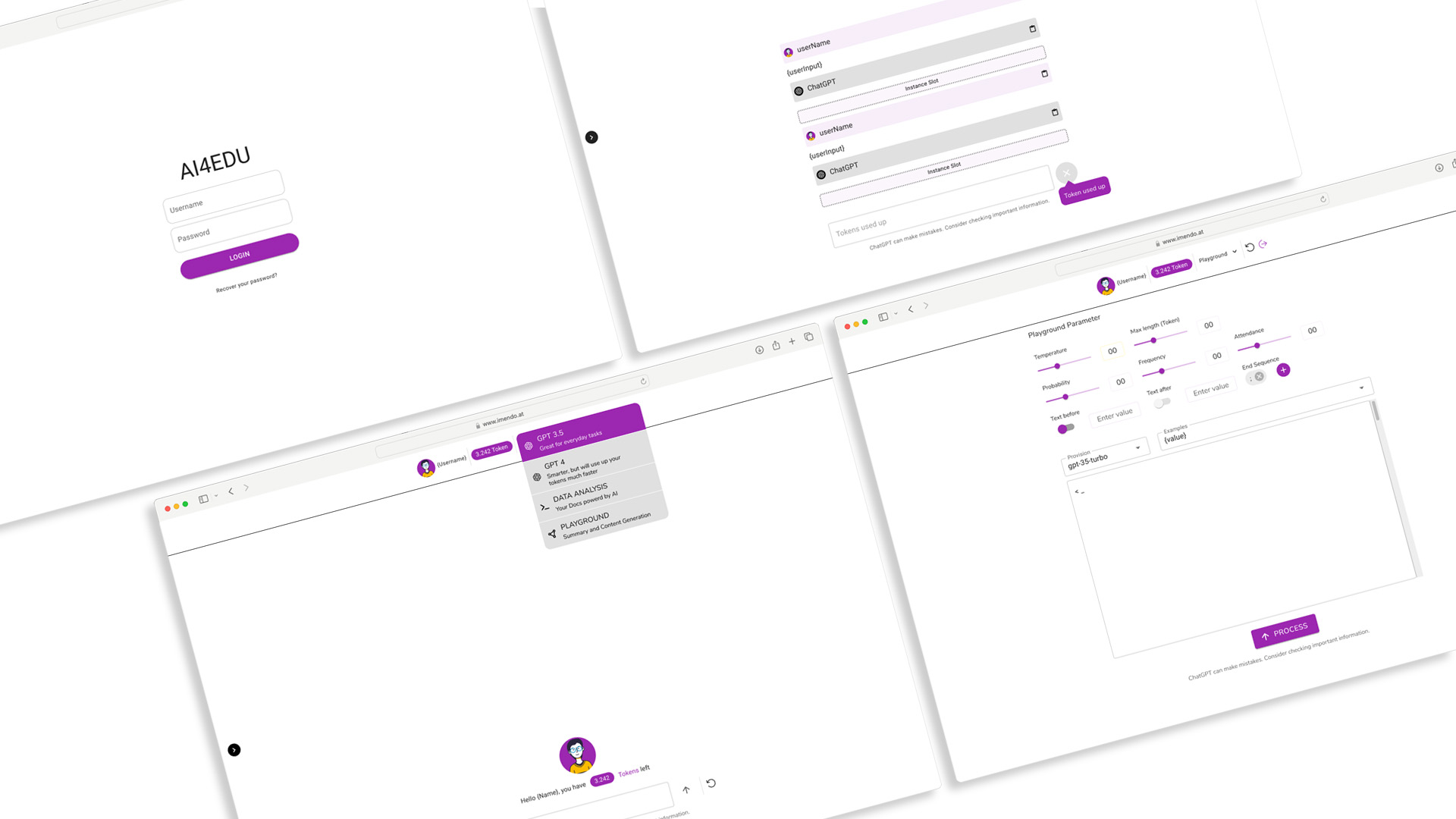 Chat-Funktionalitäten GPT 3.5 & GPT 4 (Turbo- und Previewmodelle sind optional verfübgar.)